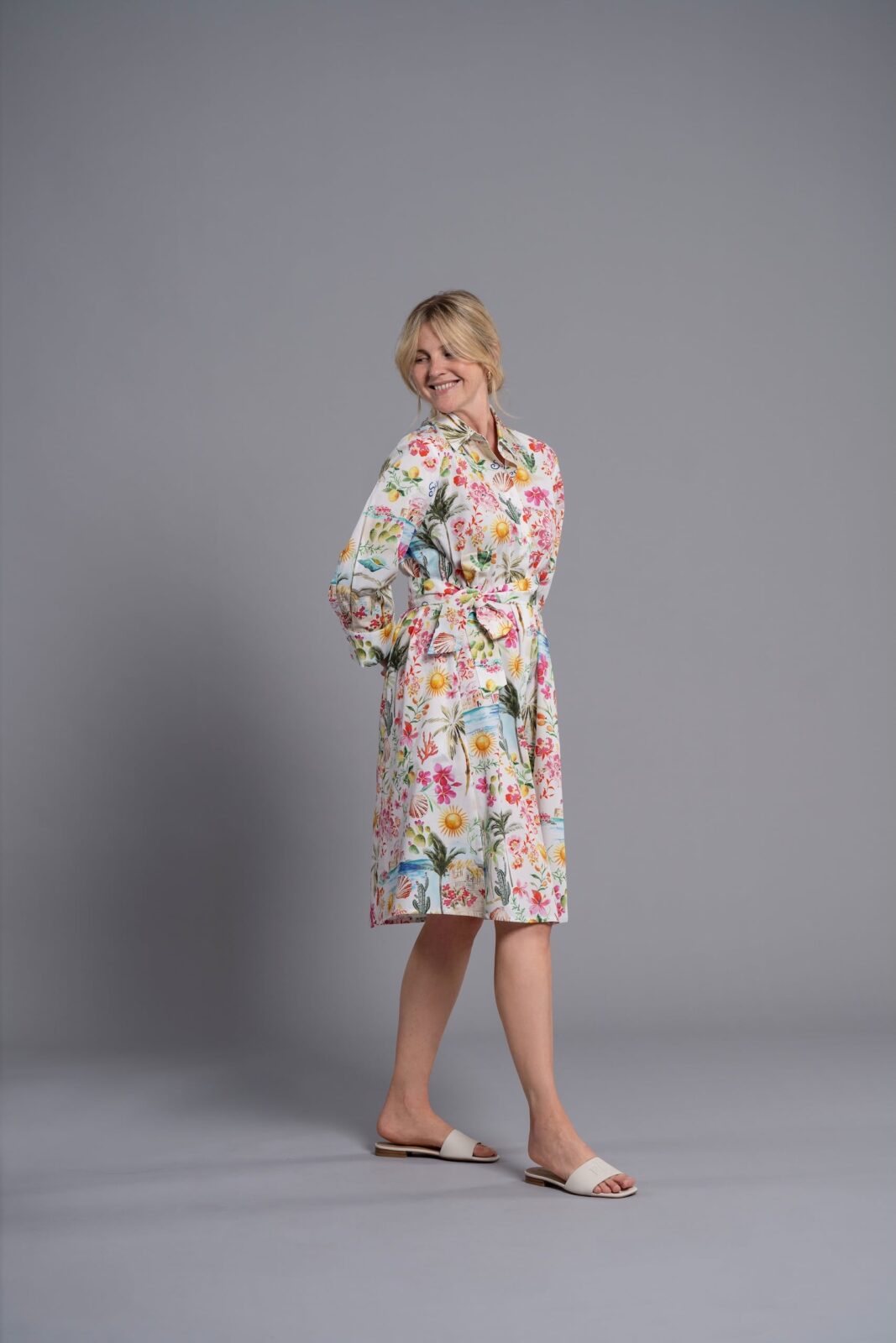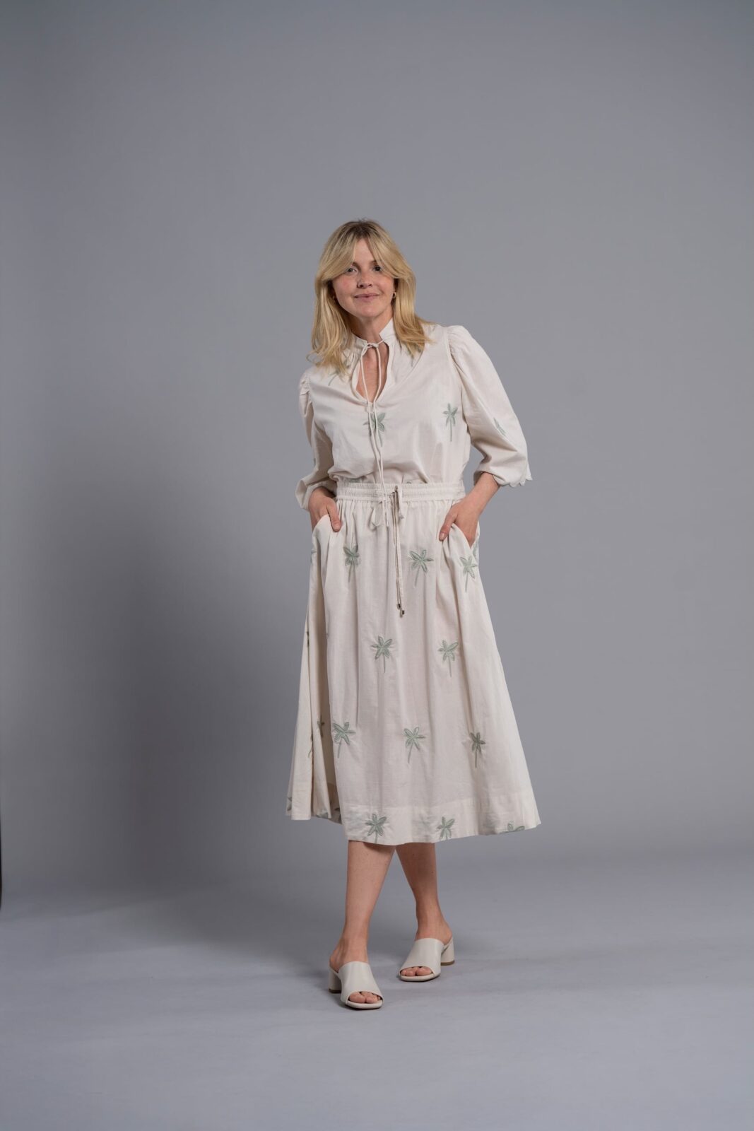 Bluse mit Palmenprint | Midi-Rock mit Tunnelzug