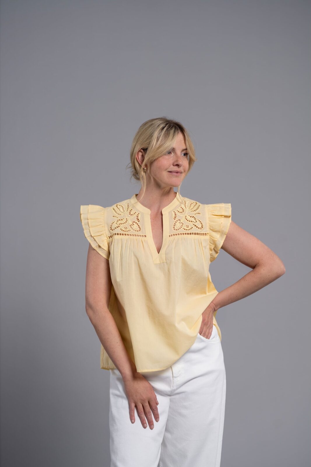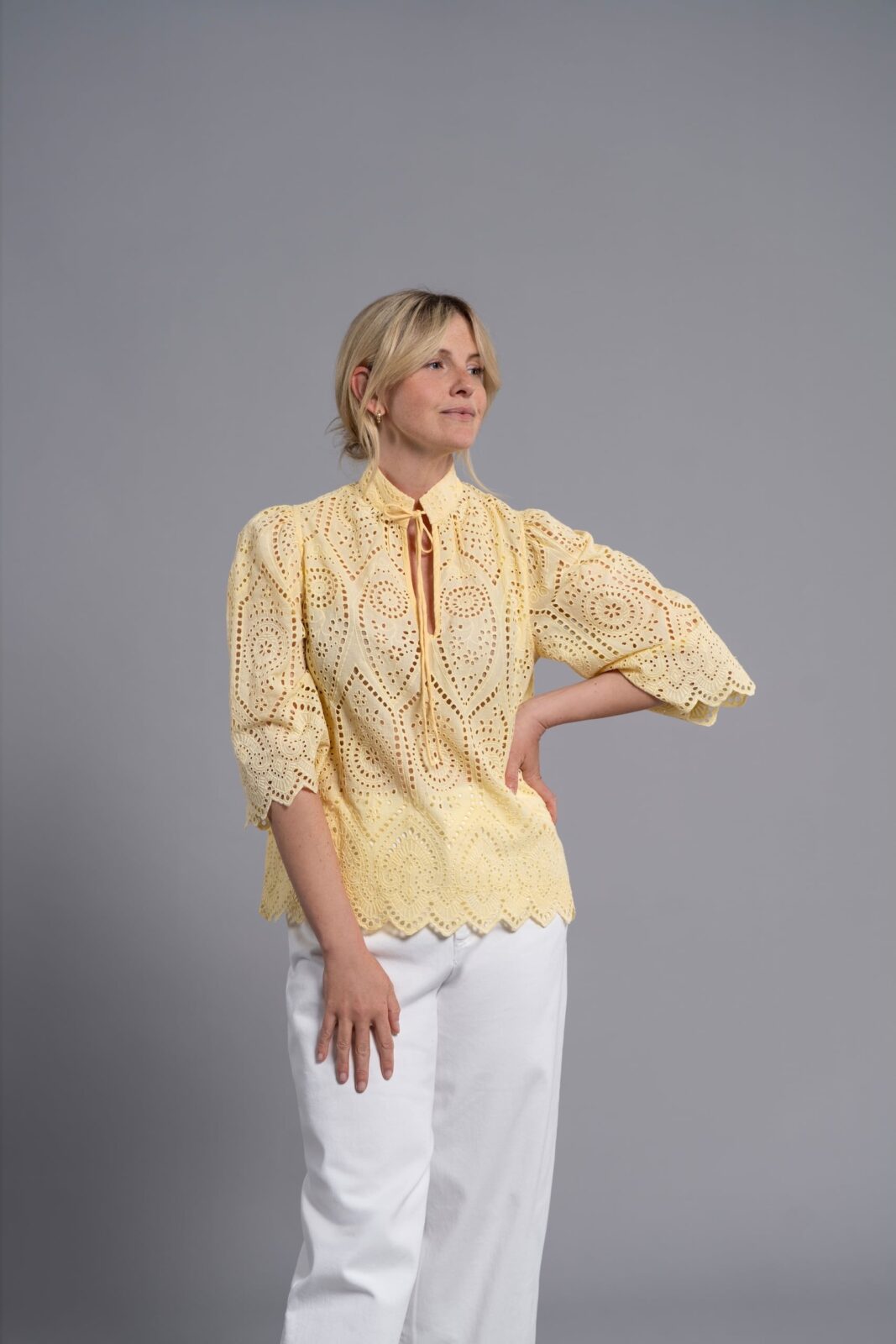 Hemdbluse mit halblangen Ärmeln Lochstickerei | Short mit Lochstickerei